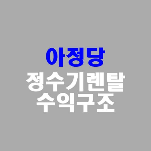 안녕하세요, 오늘은 아정당이라는 회사에 관한 간단한 수익구조와 정수기 렌탈방법에 대해서 알아보도록 하겠습니다.